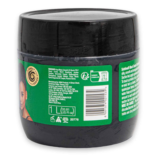 Black Castor Oil Anti-Dandruff Braid & Twist Wax Gel 1L | Frizz Control Smooth Locs & Defined Twists