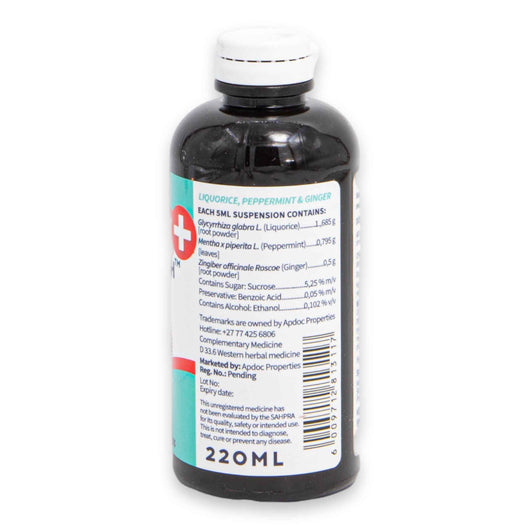 Brand: iQhawe. Product Type: Cough Syrup. Key Ingredients: Herbal extracts. Volume: 220ml. Formulation: Liquid. Allergies/Warnings: Consult a doctor before use if pregnant or nursing.