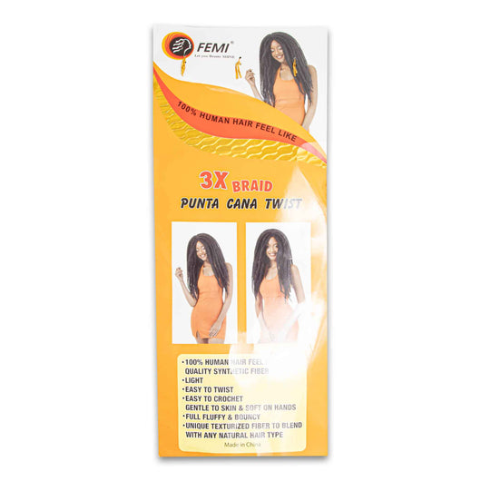 Experience effortless, salon-quality braids—add Femi 3X Braid Punta Cana Twist to your collection today.