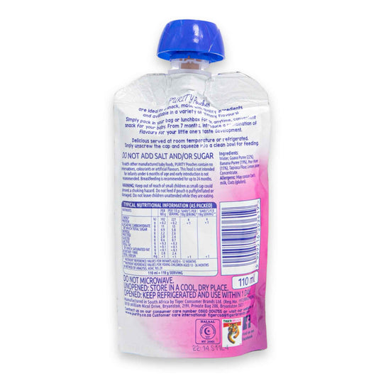 Introducing the Purity Food Pouches Fruit Puree, a delightful and nutritious snack designed for babies from 6 months old. Perfect for on-the-go parents, these convenient pouches are packed with delicious fruit flavors, making them an ideal choice for between meal fillers. Free from preservatives, colorants, and artificial flavors, Purity stands out in the food & formula category, ensuring your little one enjoys only the best.