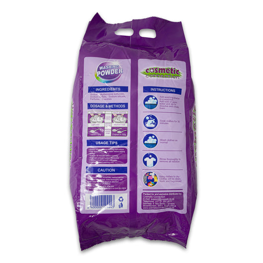 Brand: Cosmetic Connection. Type: Hand Washing Powder. Key Ingredients: Biodegradable cleaning agents. Volume: 2kg. Formulation: Powder. Allergies: Keep out of reach of children; avoid contact with eyes.