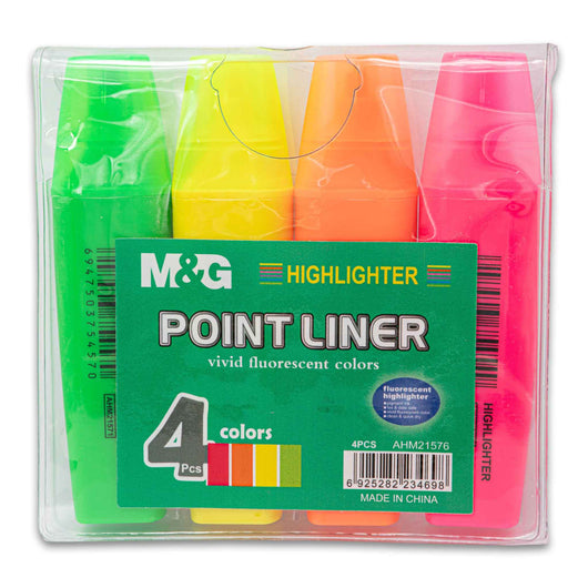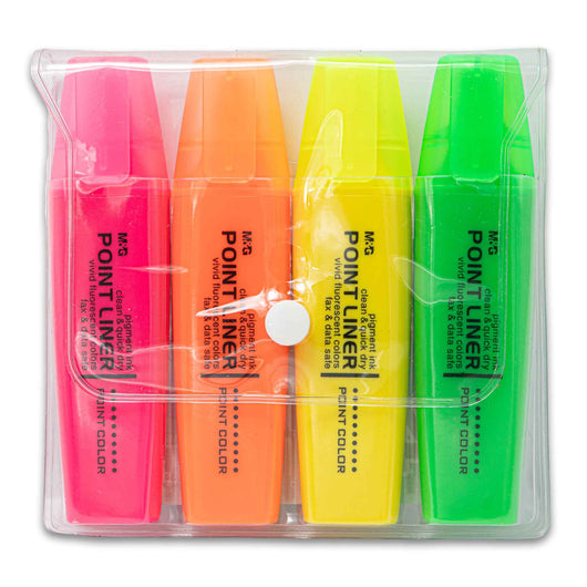 Point Liner Highlighter Set | 4 Vivid Fluorescent Colours – Smooth Ink for Clear Quick-Dry Highlighting