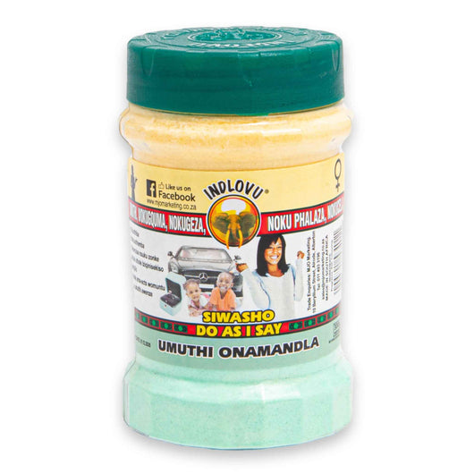 Introducing the Indlovu Siwasho Lucky Bath Powder, your ultimate companion for achieving positivity and overcoming bad luck. This 300g bath powder is expertly formulated with a unique blend of ingredients that enhance your focus and support your goals, making it perfect for critical moments like exams or challenging situations.